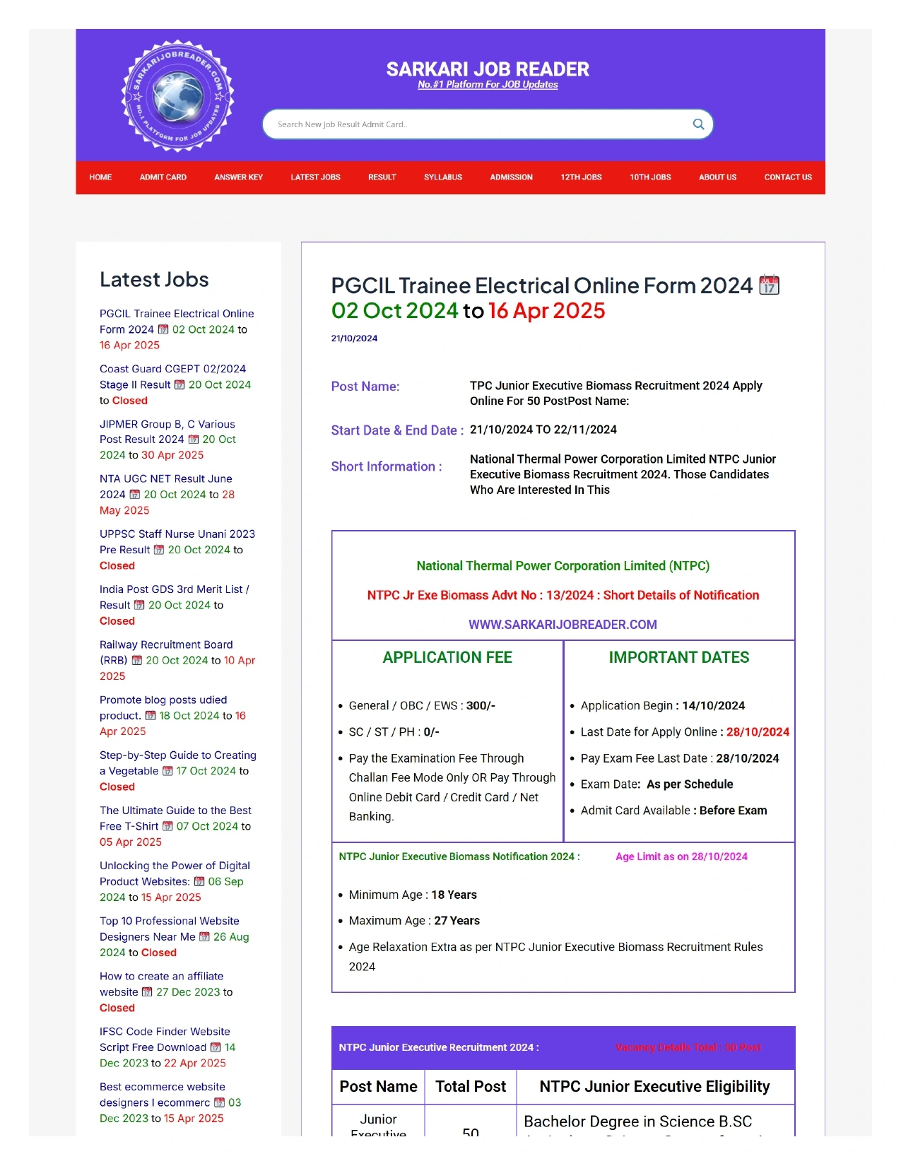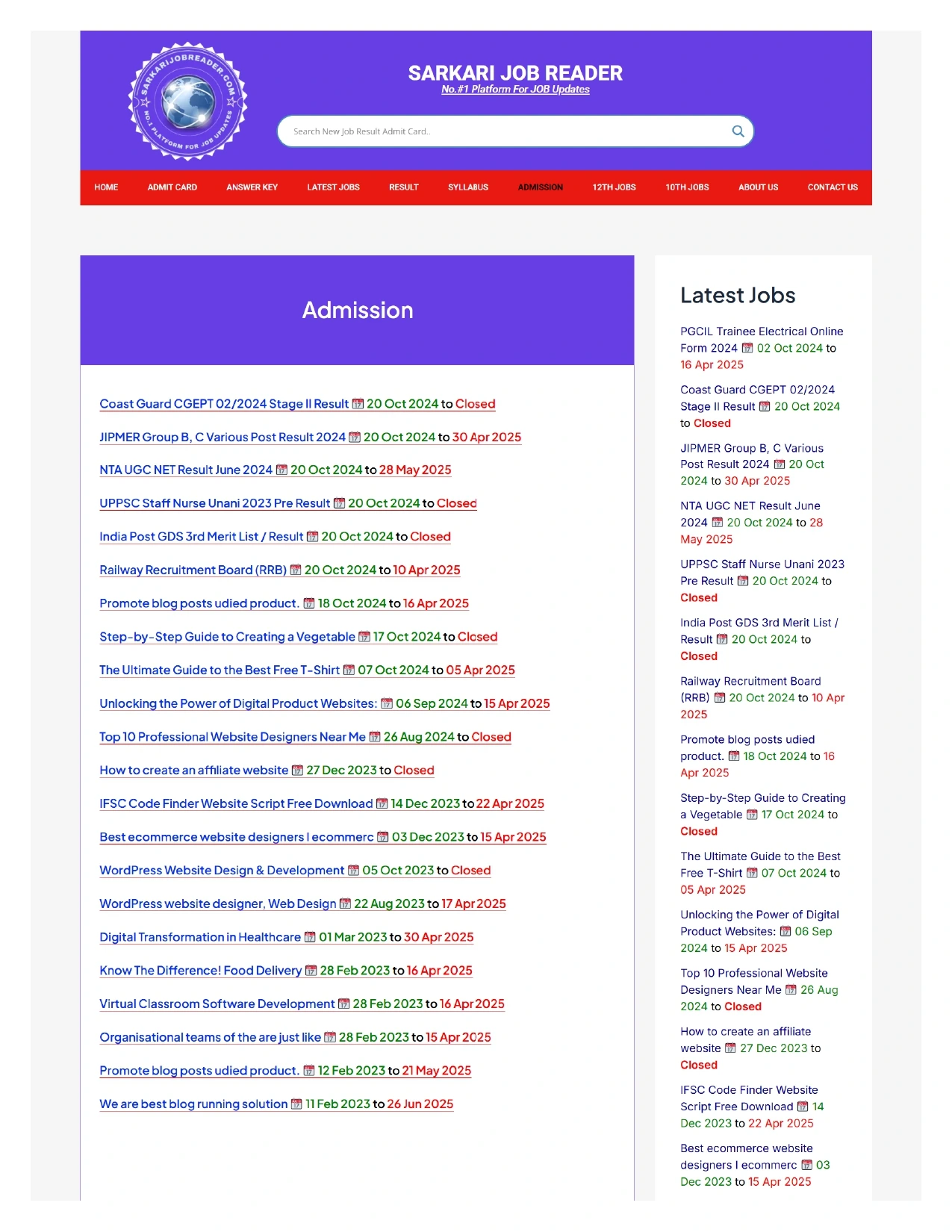 Job update website in wordpress
